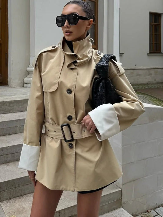 • Glenda Contrast-Cuff Trench Jacket